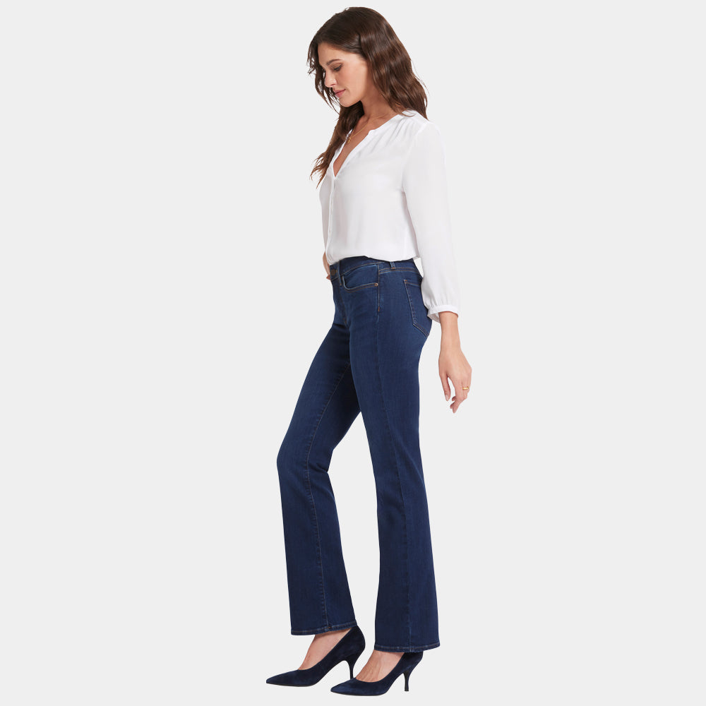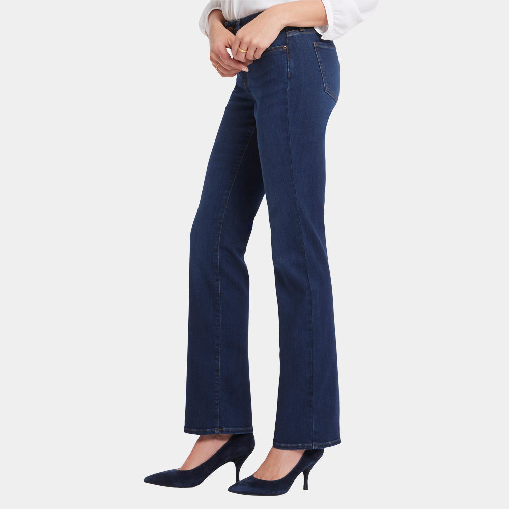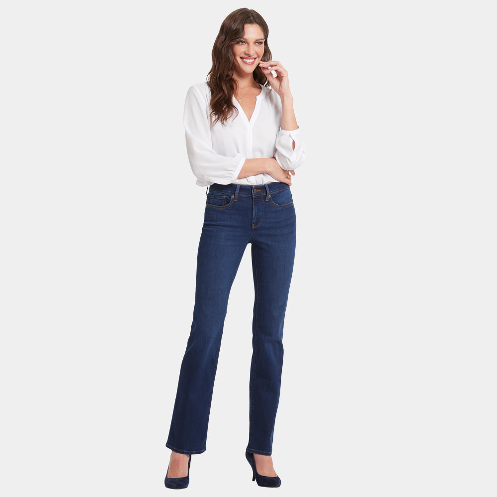 Not too long, not too short—NYDJ's Barbara Bootcut Jeans fit just right. Our exclusive Lift Tuck® Technology uses a proprietary slimming panel with a patented criss-cross design to give this comfortable, go-to style its superior shaping powers. The traditional bootcut fit gives you a flattering legs-for-days look—and makes these jeans an effortless closet staple. Finished with classic five-pocket styling, zip fly and button closure. This jean is made with earth-friendly methods that result in reduced consumption of water, chemicals and/or energy.