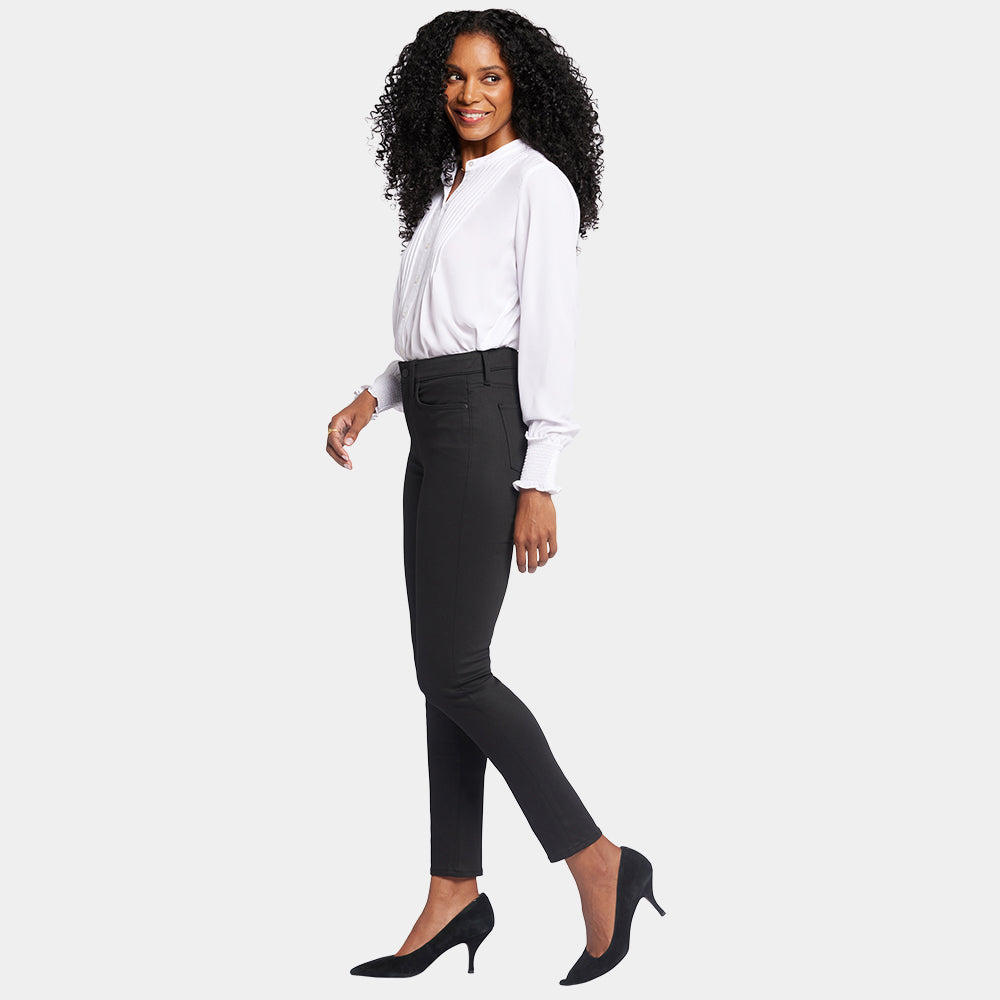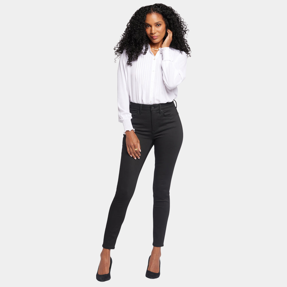 The skinny jeans you love for a second-skin fit are now available in soft and stretchy BlackLast™ denim. NYDJ’s Ami Skinny Jeans with High Rise flatter every inch of you, giving you sculpted legs, a tucked tummy and lifted curves. Made of up to 17 recycled plastic bottles per pair, every BlackLast™ style provides lasting color intensity with 50% lower environmental impact than traditional denim. Our unique Lift Tuck® Technology helps flatten in the front by using a proprietary slimming panel with a patented criss-cross design, while an extra-high waist emphasizes the curvy silhouette. Features classic five-pocket styling, zip fly and button closure.