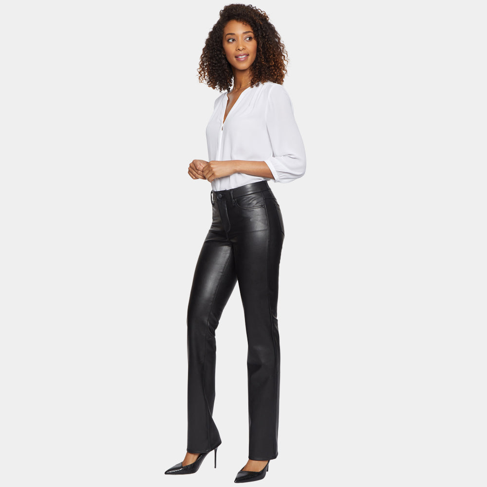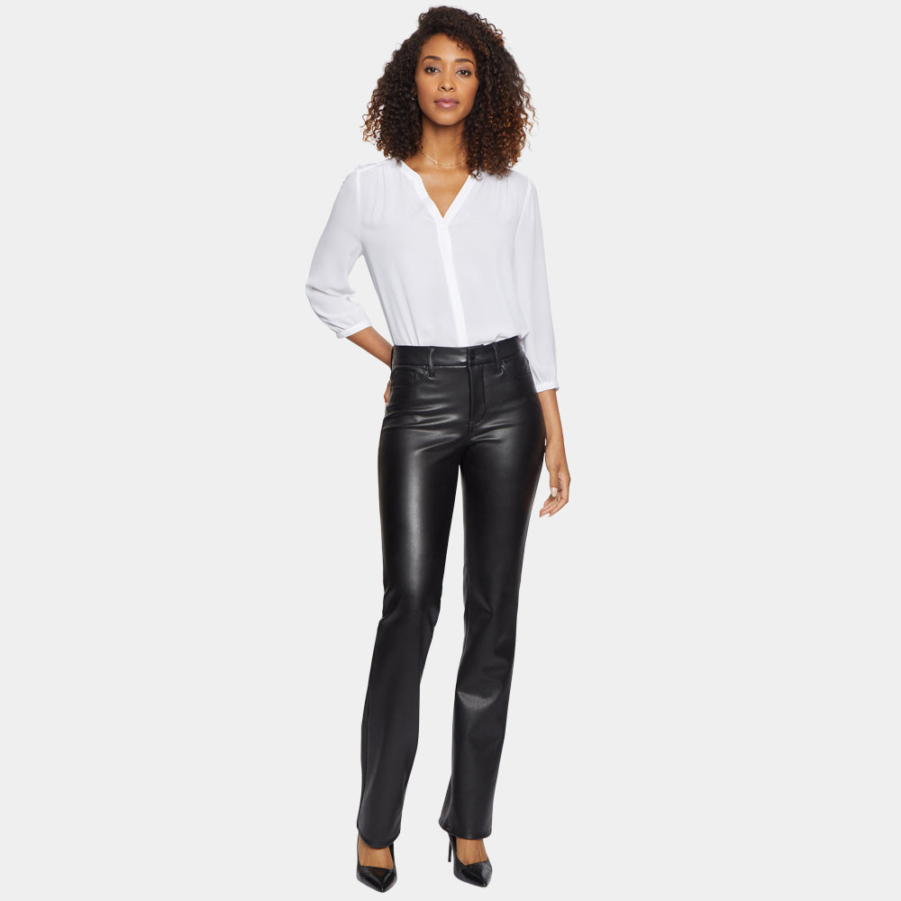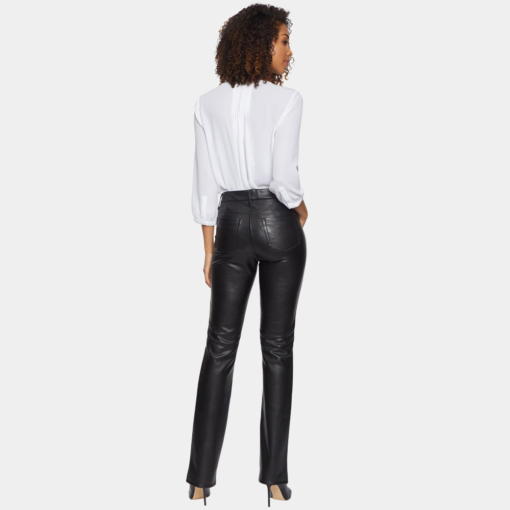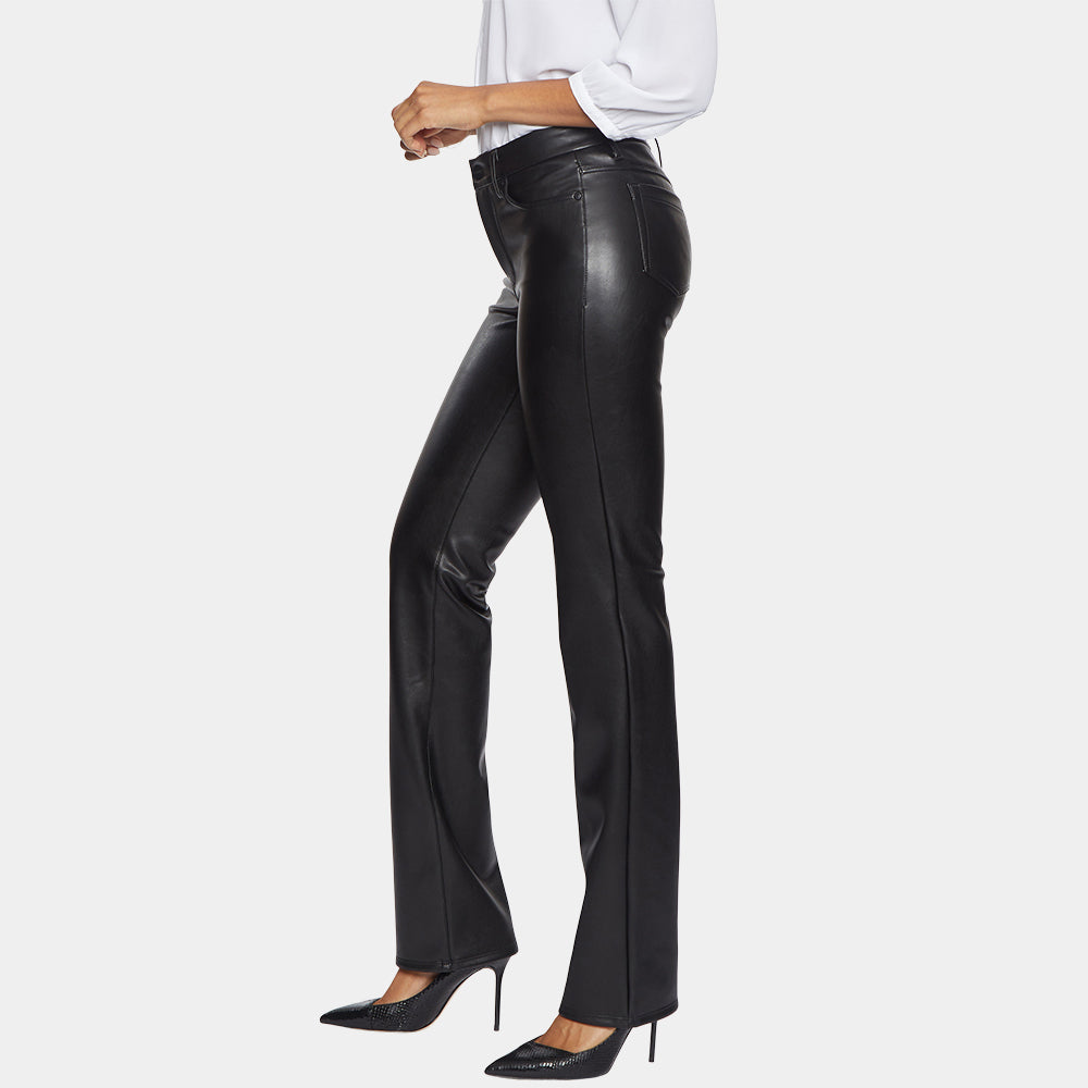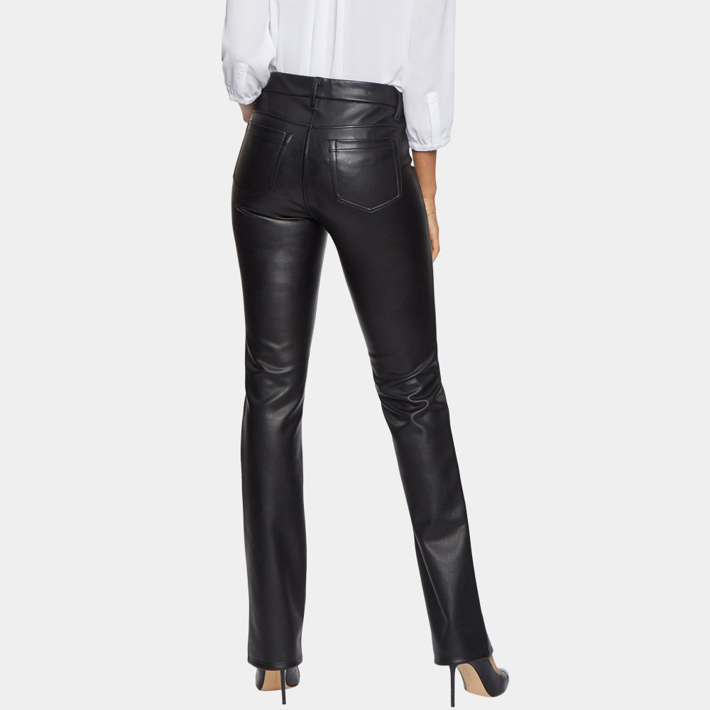 Our most popular silhouette, now in super-sculpting compression faux leather. NYDJ's Faux Leather Marilyn Straight Pants in Black have a flattering and versatile straight-leg fit that elongates the figure, while their texture adds a bold edge to outfits. Lift Tuck® Technology uses a proprietary slimming panel with a patented criss-cross design to shape and support your curves for even more sleekness. The styling of this pair is finished with five pockets and a zip fly with button closure. These pants are part of Sculpt-Her™, NYDJ's most novel collection of compression-contouring silhouettes with an unparalleled, cutting-edge fit.