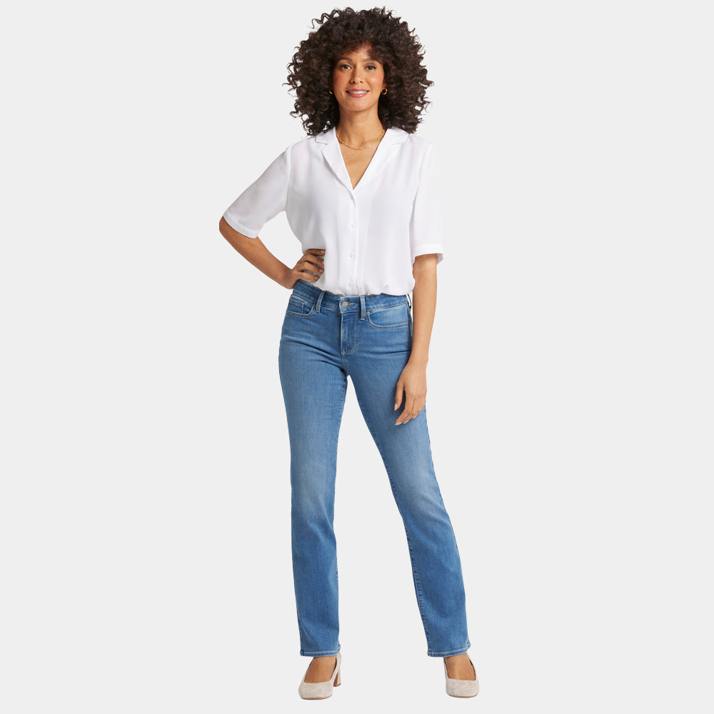 You can't go wrong with our iconic bestselling fit. The curve-sculpting, figure-elongating construction of NYDJ's Marilyn Straight Jeans pairs well with everything, in a classic straight-leg silhouette. Our Lift Tuck® Technology uses a proprietary slimming panel with a patented criss-cross design to shape and support your curves. Features classic five-pocket styling and a zip fly with button closure. This jean is made with earth-friendly methods that result in reduced consumption of water, chemicals and/or energy.