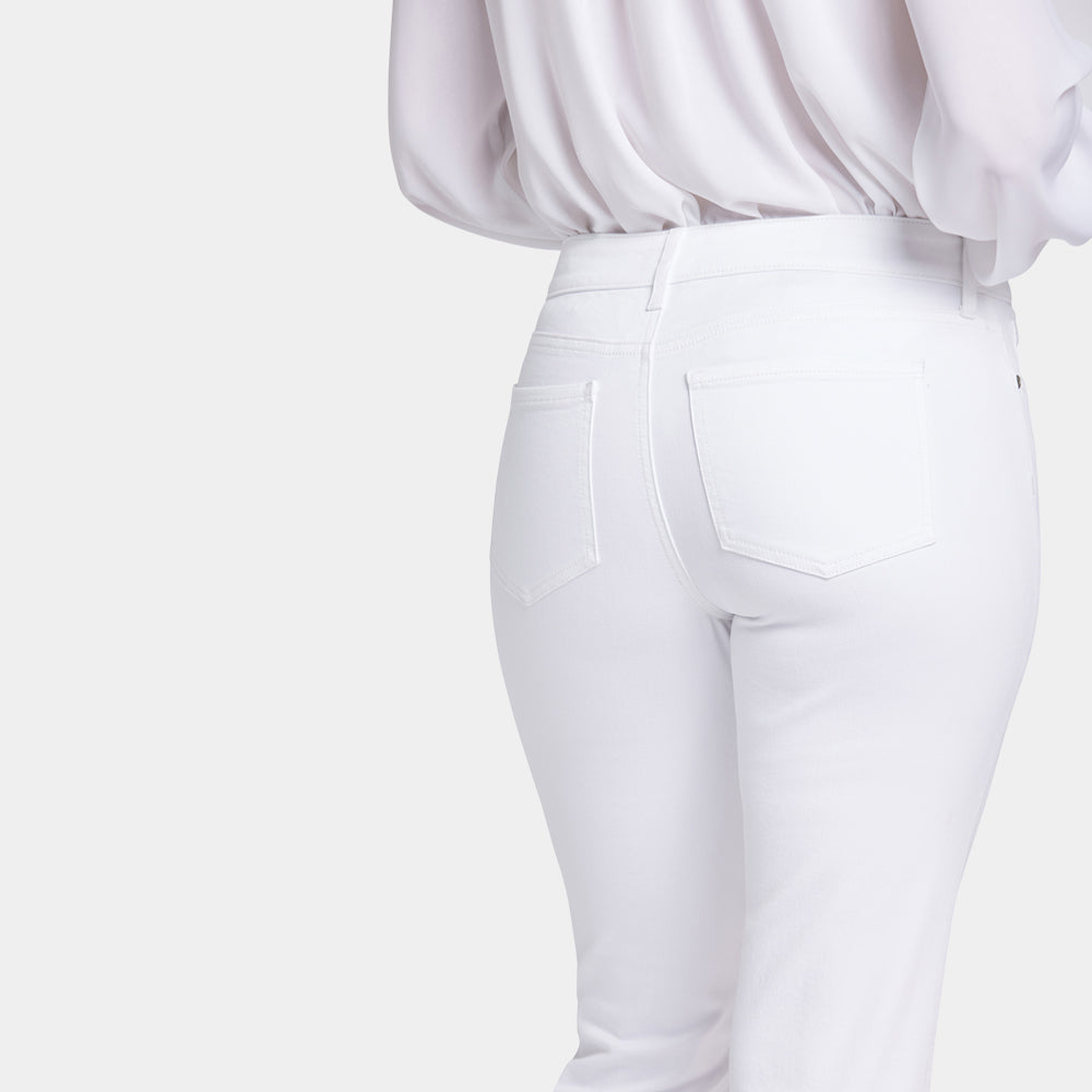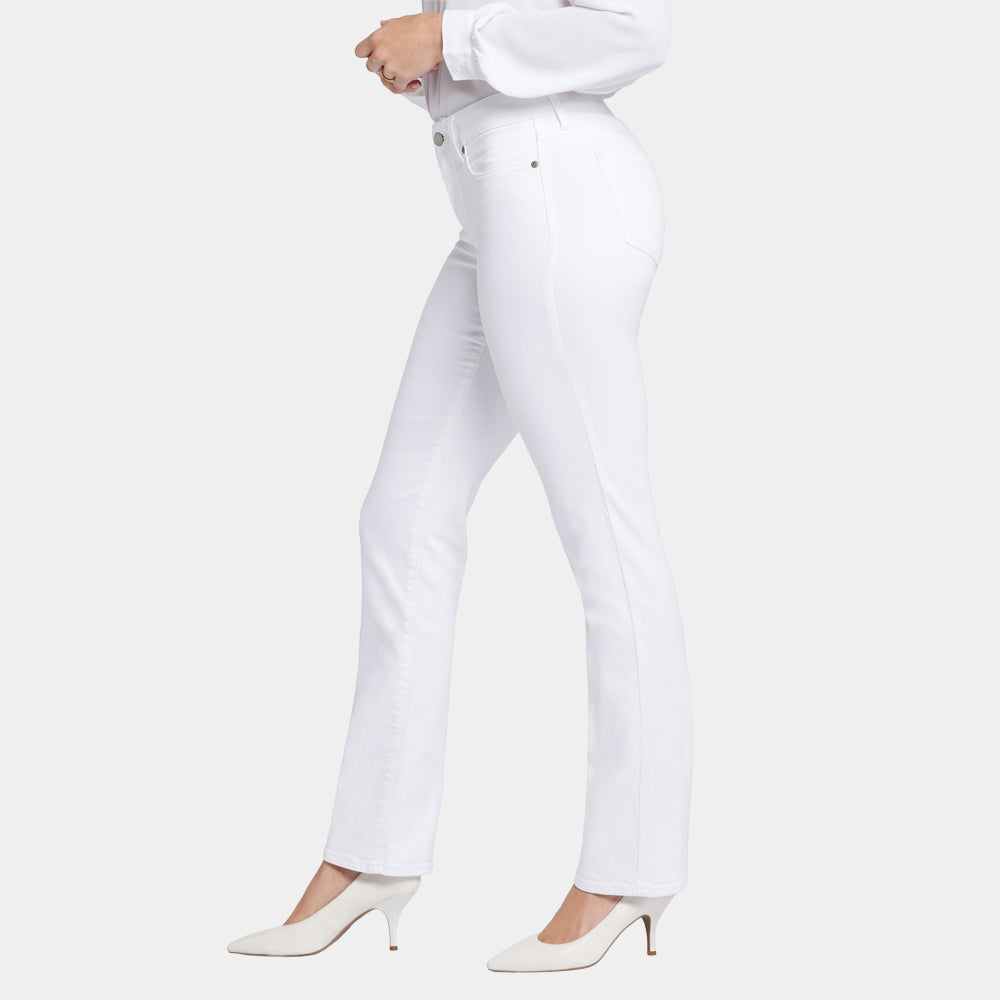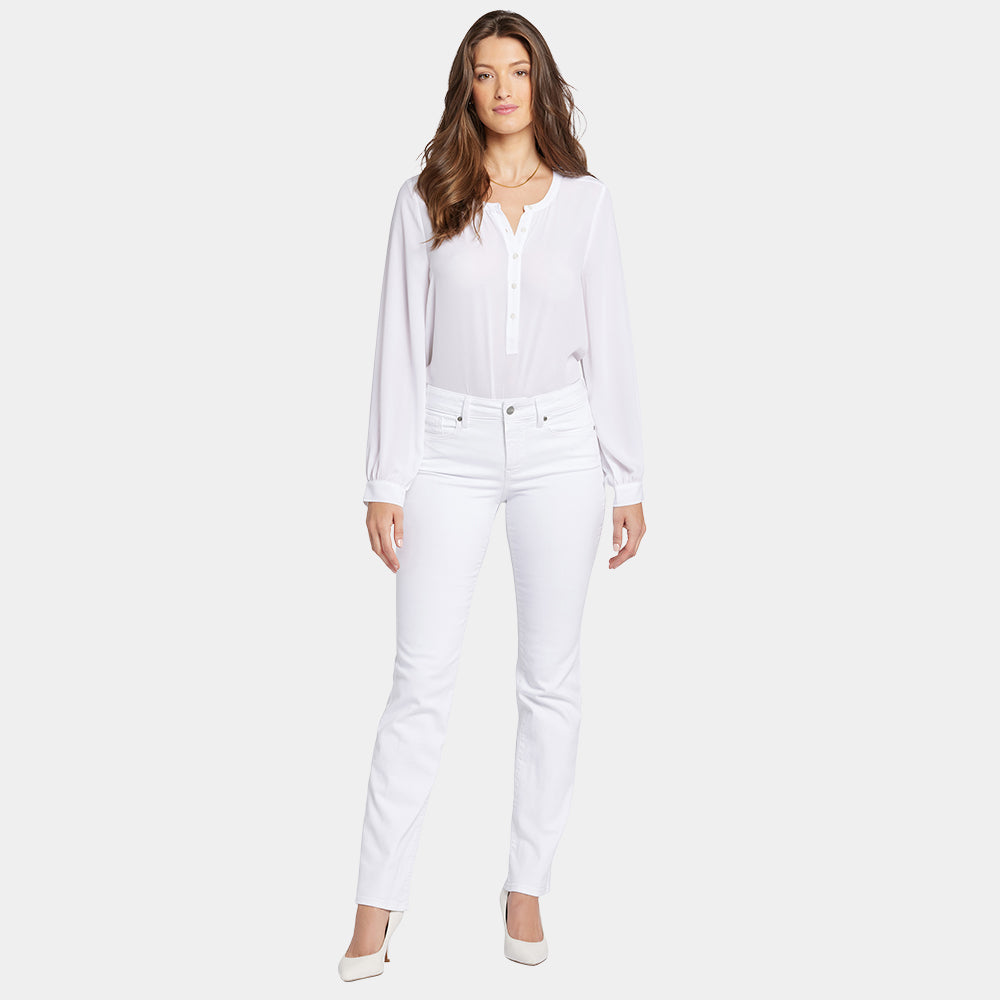 You can't go wrong with our iconic bestselling fit. The curve-sculpting, figure-elongating construction of NYDJ's Marilyn Straight Jeans pairs well with everything, in a classic straight-leg silhouette. Lift Tuck® Technology uses a proprietary slimming panel with a patented criss-cross design to shape and support your curves. Features classic five-pocket styling and a zip fly with button closure.
