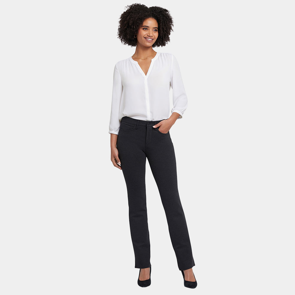 Our most popular silhouette, now in super-sculpting compression ponte. NYDJ's Marilyn Straight Pants have a flattering and versatile straight-leg fit that elongates the figure, and this pair is designed to be especially sleek with unique high-tech fabric that shapes and supports. Lift Tuck® Technology uses a proprietary slimming panel with a patented criss-cross design to flatten in front and lift in back for even more smoothness. The styling of this pair is finished with five pockets and a zip fly with button closure. These pants are part of Sculpt-Her™, NYDJ's most novel collection of compression-contouring silhouettes with an unparalleled, cutting-edge fit.