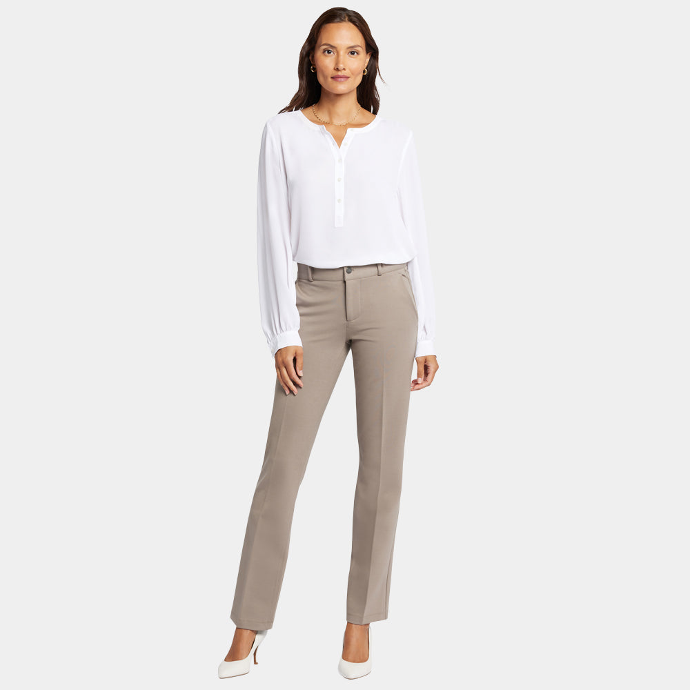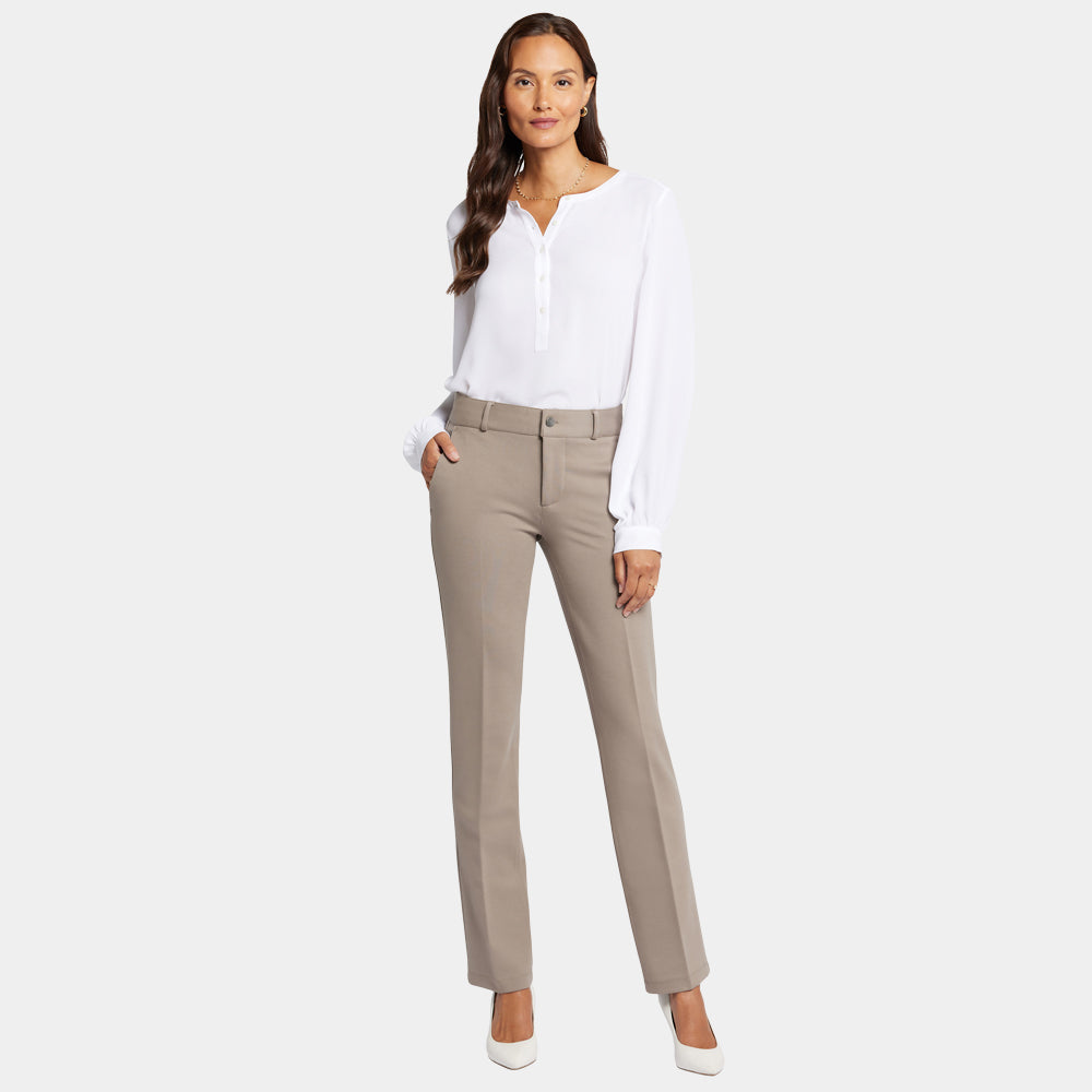 Timeless style meets advanced compression ponte in the Classic Trouser Pants by NYDJ. These sleek, sophisticated bottoms are a wardrobe hero you can wear from desk to dinner and beyond. Our signature Lift Tuck® Technology flattens and flatters using a proprietary slimming panel with a patented criss-cross design, while the sculpting fabric enhances the flawless fit. Features front slash pockets, back darts and welt detail, belt loops, pressed leg creases and a zip fly with button closure. These pants are part of Sculpt-Her™, a collection of compression-contouring essentials with an unparalleled, cutting-edge fit.
